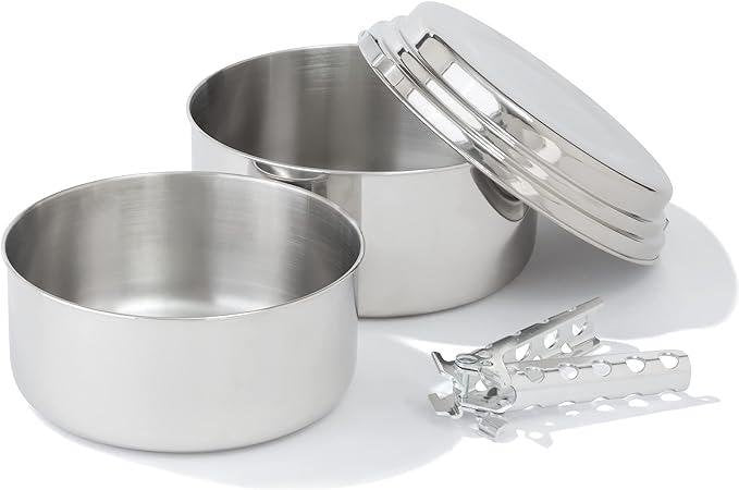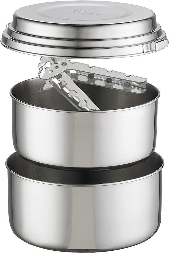 - Includes: (1) 1.5L pot, (1) 2L pot, (1) lid/plate, (1) PanHandler™ pot handle, and (1) stuff sack